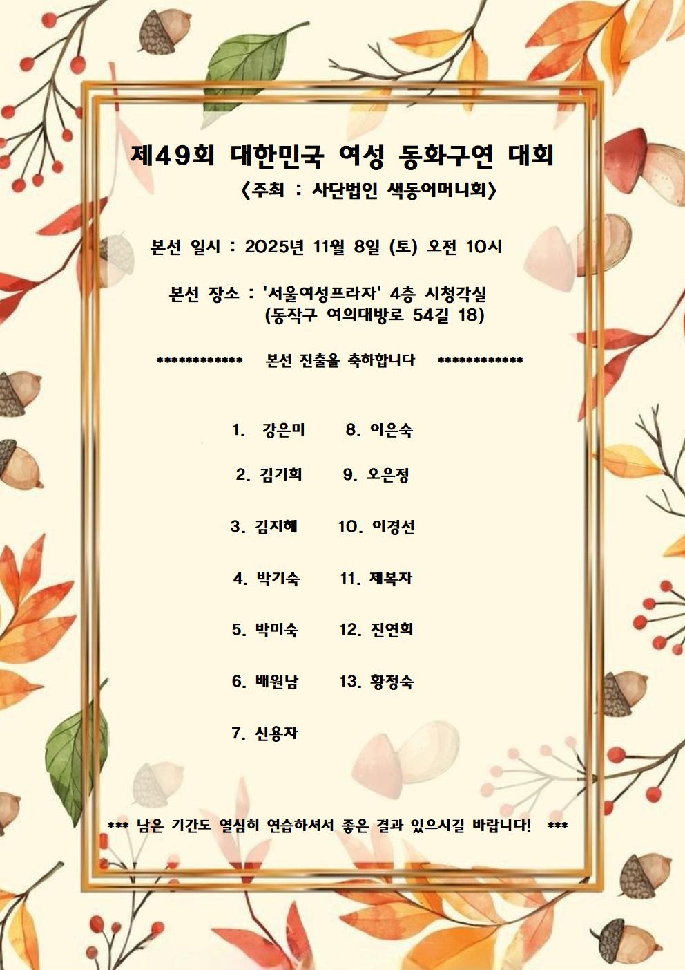 제49회 대한민국 여성 동화구연 대회 본선 진출자