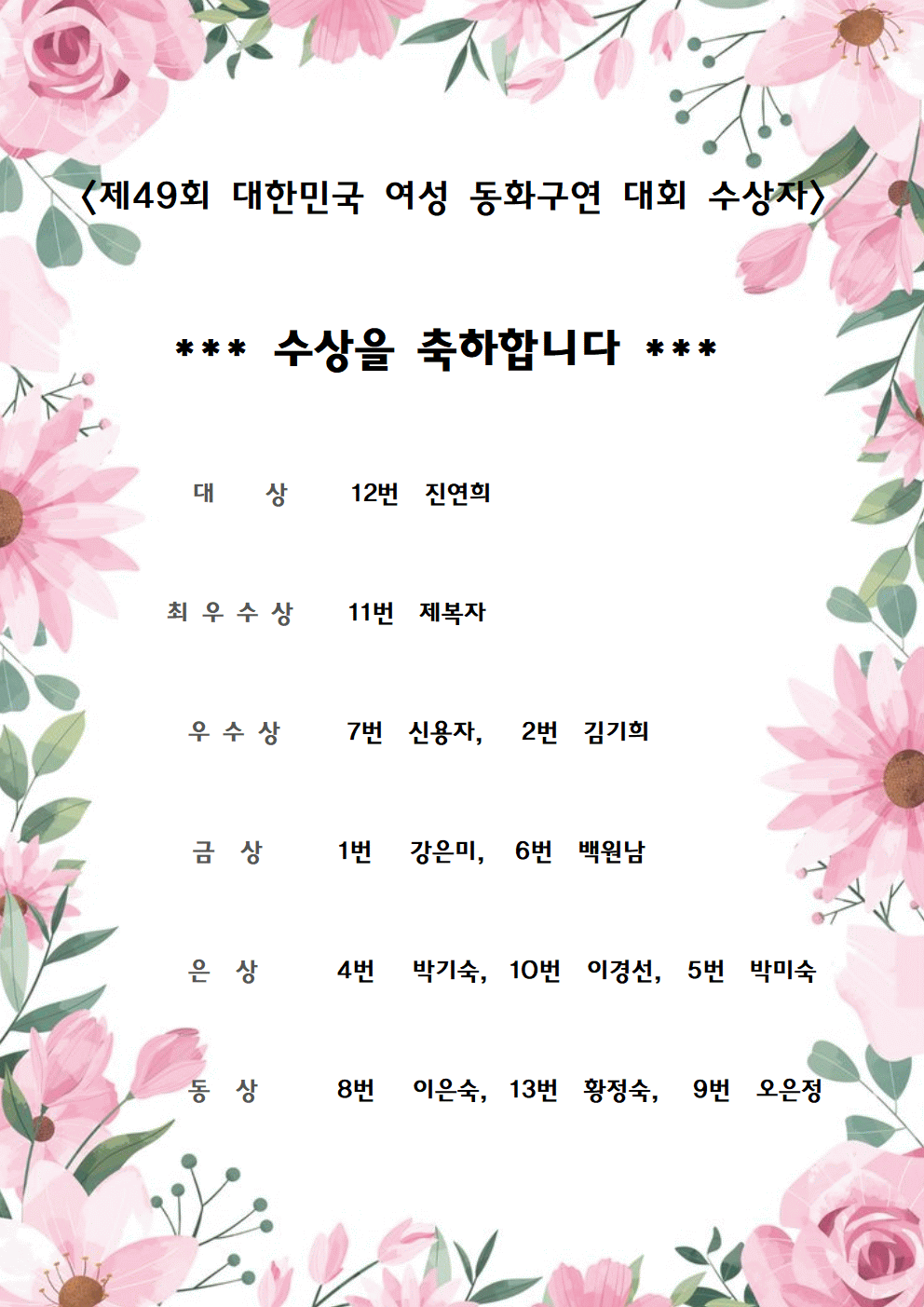 제49회 대한민국 여성 동화구연대회 수상자 명단