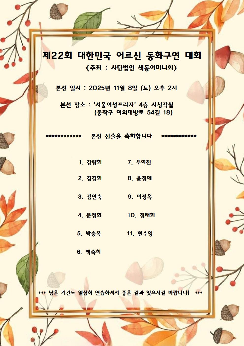제22회 대한민국 어르신 동화구연 대회 본선 진출자